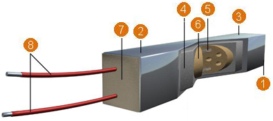 All are perfectly calibrated, both internally and externally, into which a high hardness ceramic piece is inserted, perfectly resisting continuous temperature variations and with the best possible thermal conductivity, being in contact with the tube wall which allows perfect heat dissipation. The heating wire is inside the ceramic piece. The excellent quality of the Nickel-Chrome heating wire inside the ceramic piece makes it the most suitable for cartridge heater construction, thanks to its high temperature tolerance.